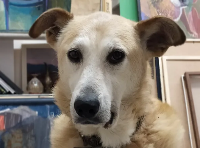 Приют Друг. 2010год. Гога был еще щенком-подростком , я помню нашу встречу ... Сначала не придавала значение ,что ходит хвостиком за мной. Старалась не прикипать душой к щенкам . Очень аккуратный в общении был , не играл, был очень ненавязчивым. В отличии от других собак Гога был молчаливым псом всю жизнь. Только улыбался всегда.