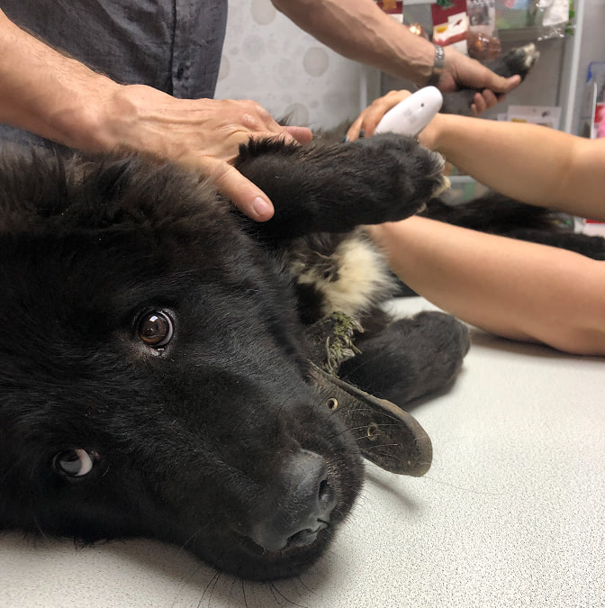Через две недели, как это часто бывает в приютах, он заболел энтеритом — отказ от еды, жидкий стул. Через несколько дней повезли в больницу, надо оставлять на стационар, но там ночью нет персонала. Решено, что на ночь я буду забирать его домой, делать уколы и капельницы, утром отвозить обратно в клинику.