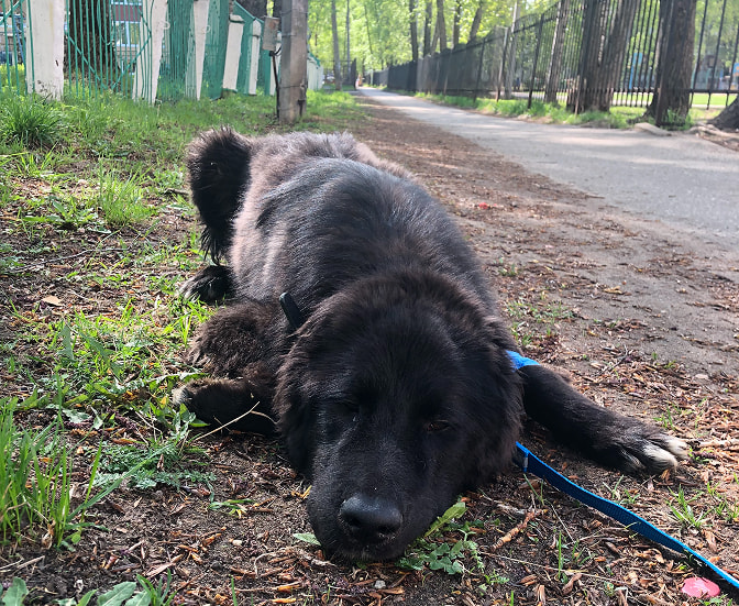 Бай попал в приют «Друг» весной 2023-го года. Худой, испуганный, с большими глазами метис кавказской овчарки.